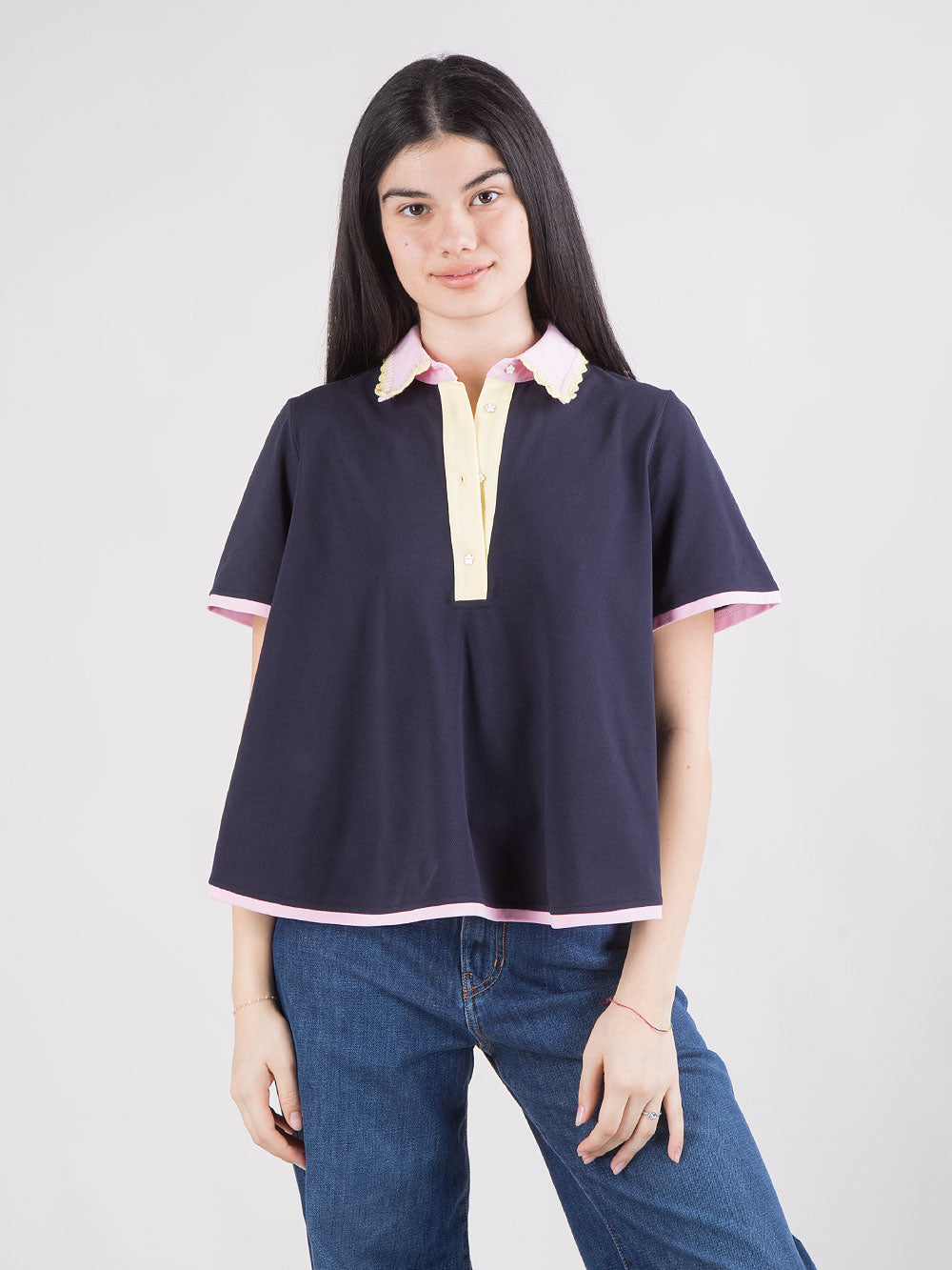 Polo blu con colletto bicolore
