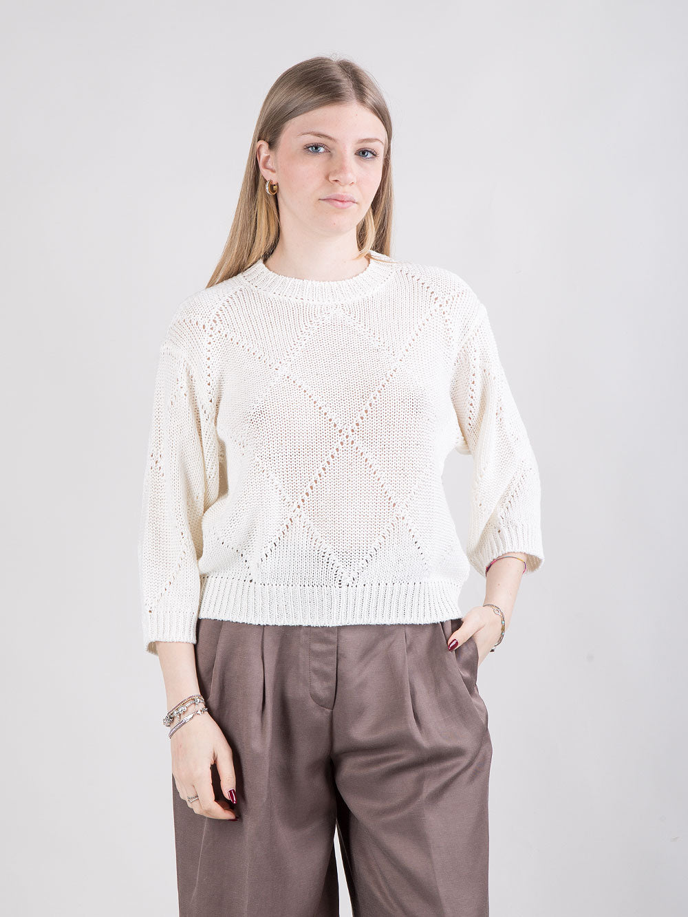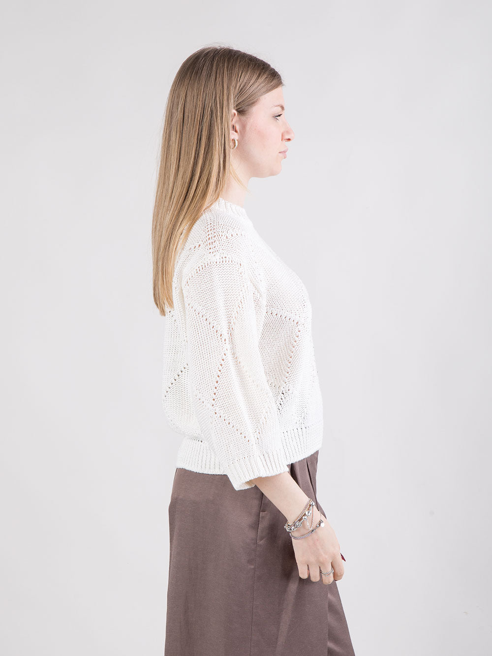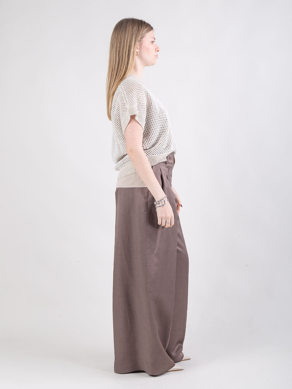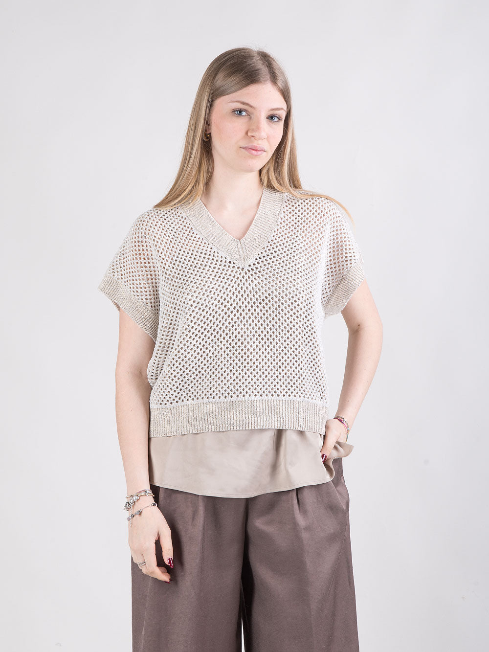 Maglia in filato di lino e cotone con microrete e paillettes