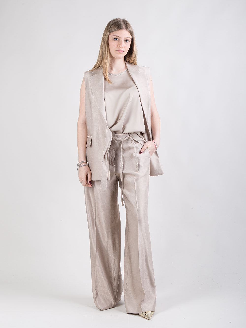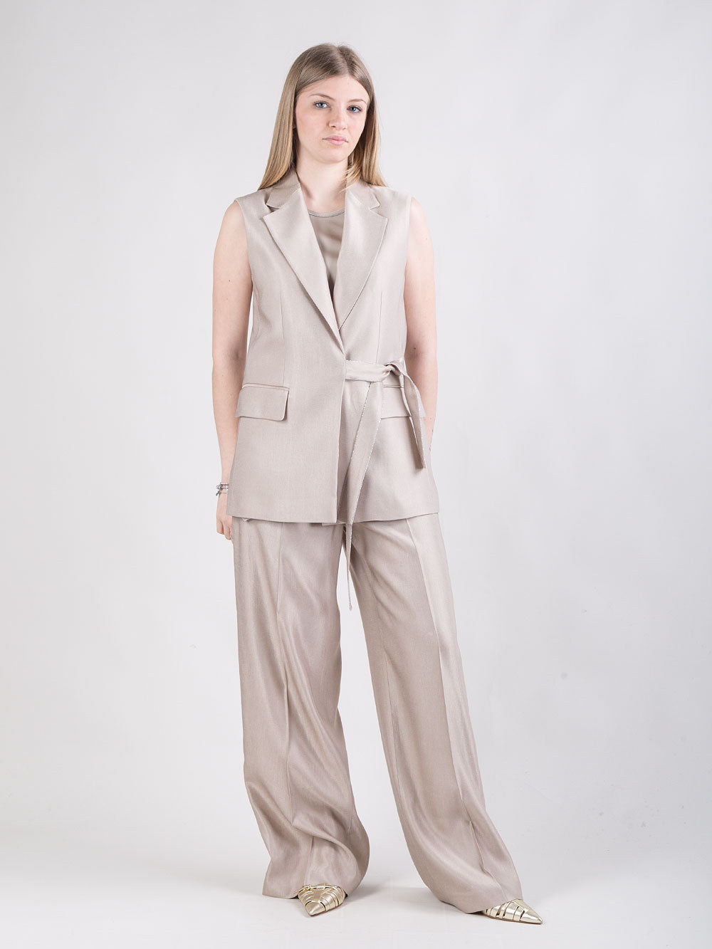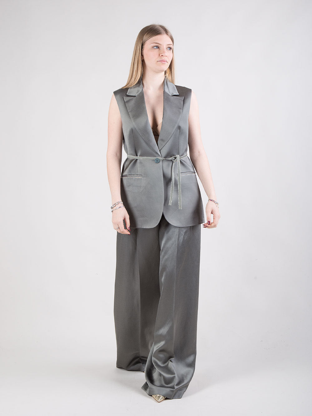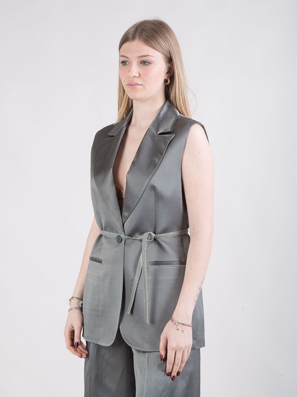 Gilet in raso con cintura laterale