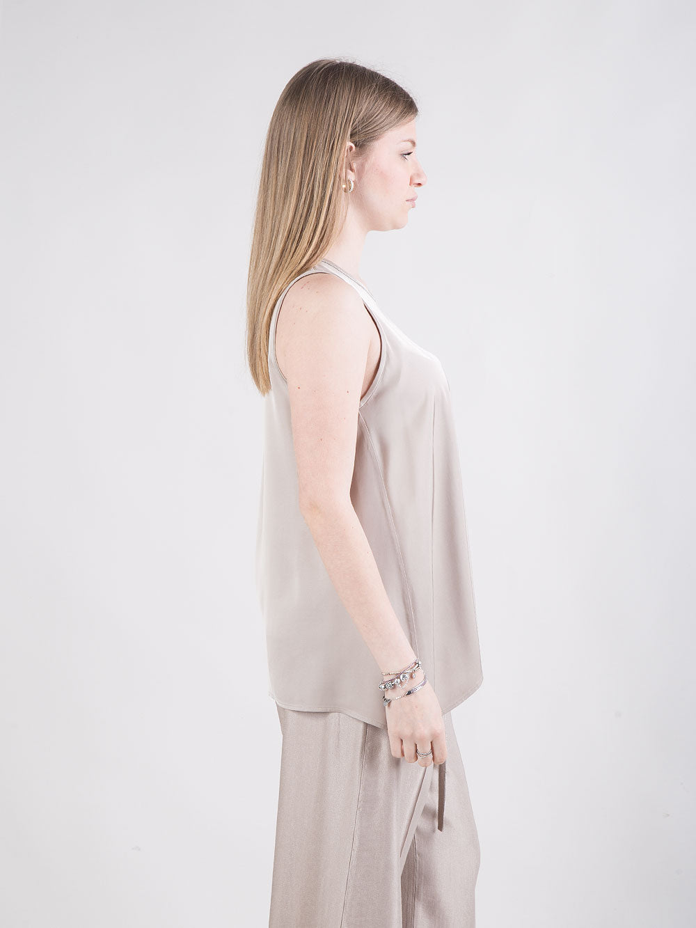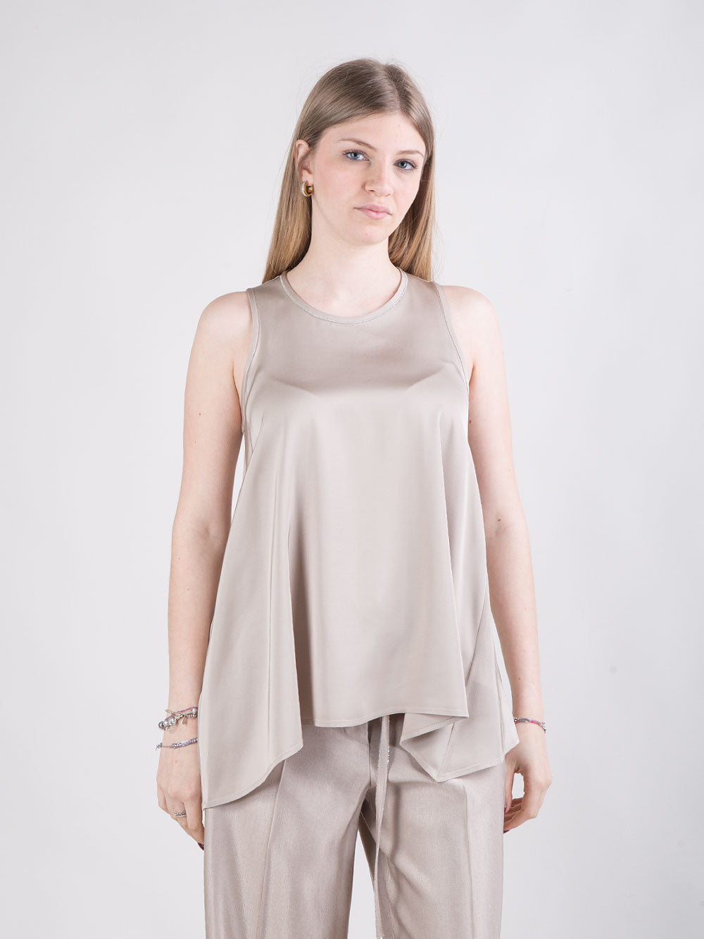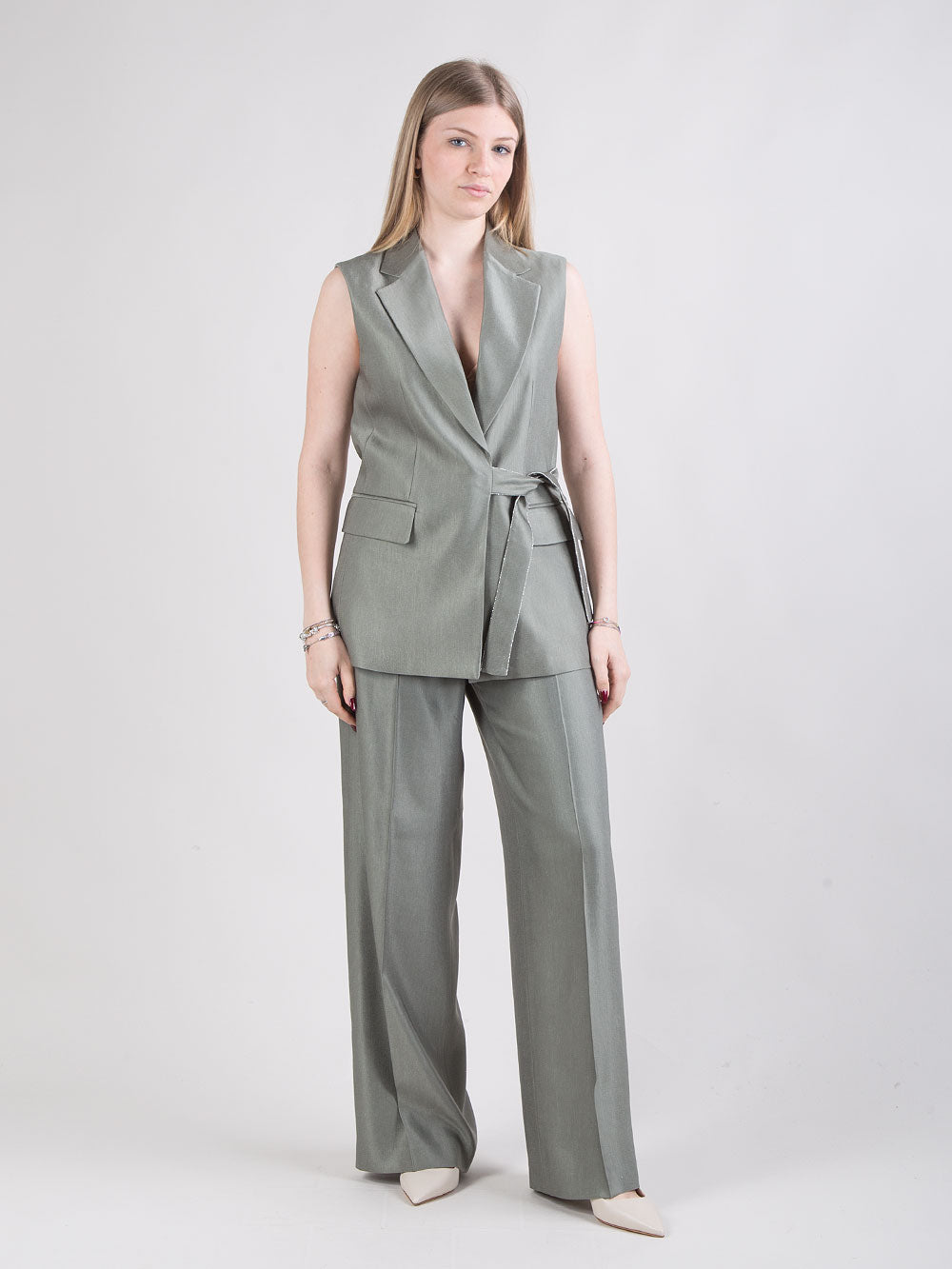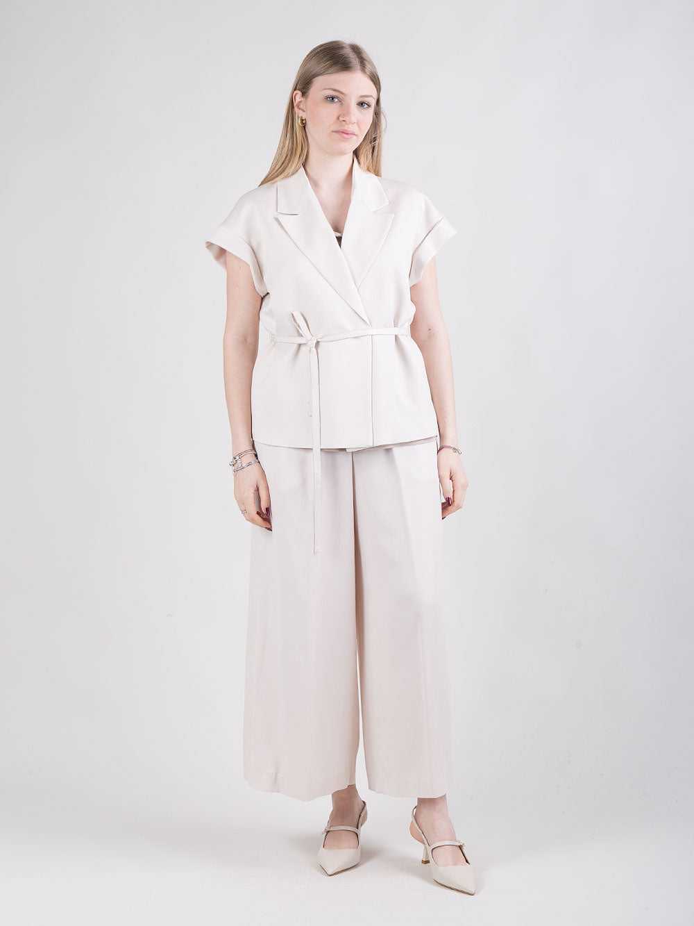 Gilet in raso con cintura laterale