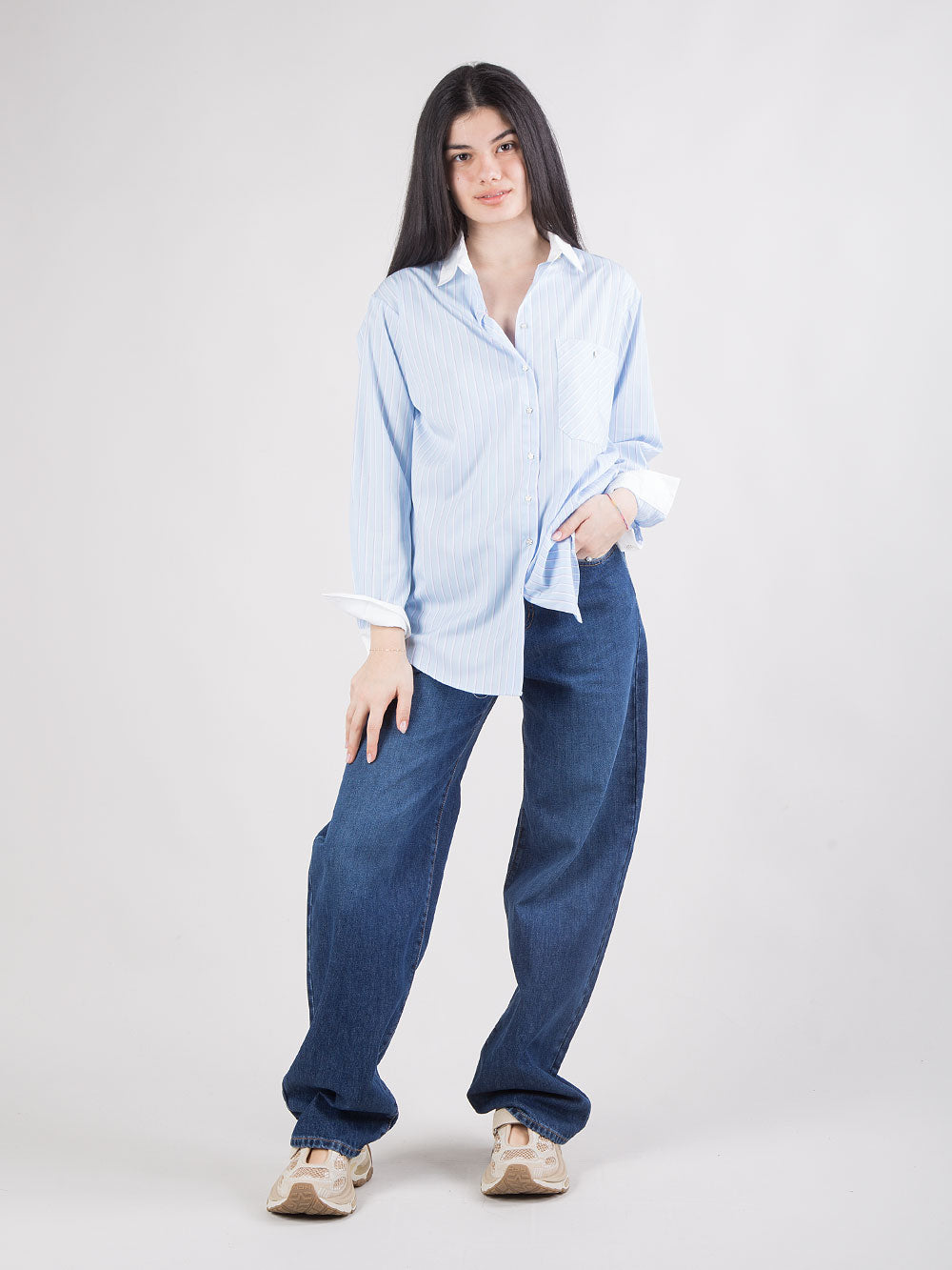 Camicia fluida a righe con ricamo