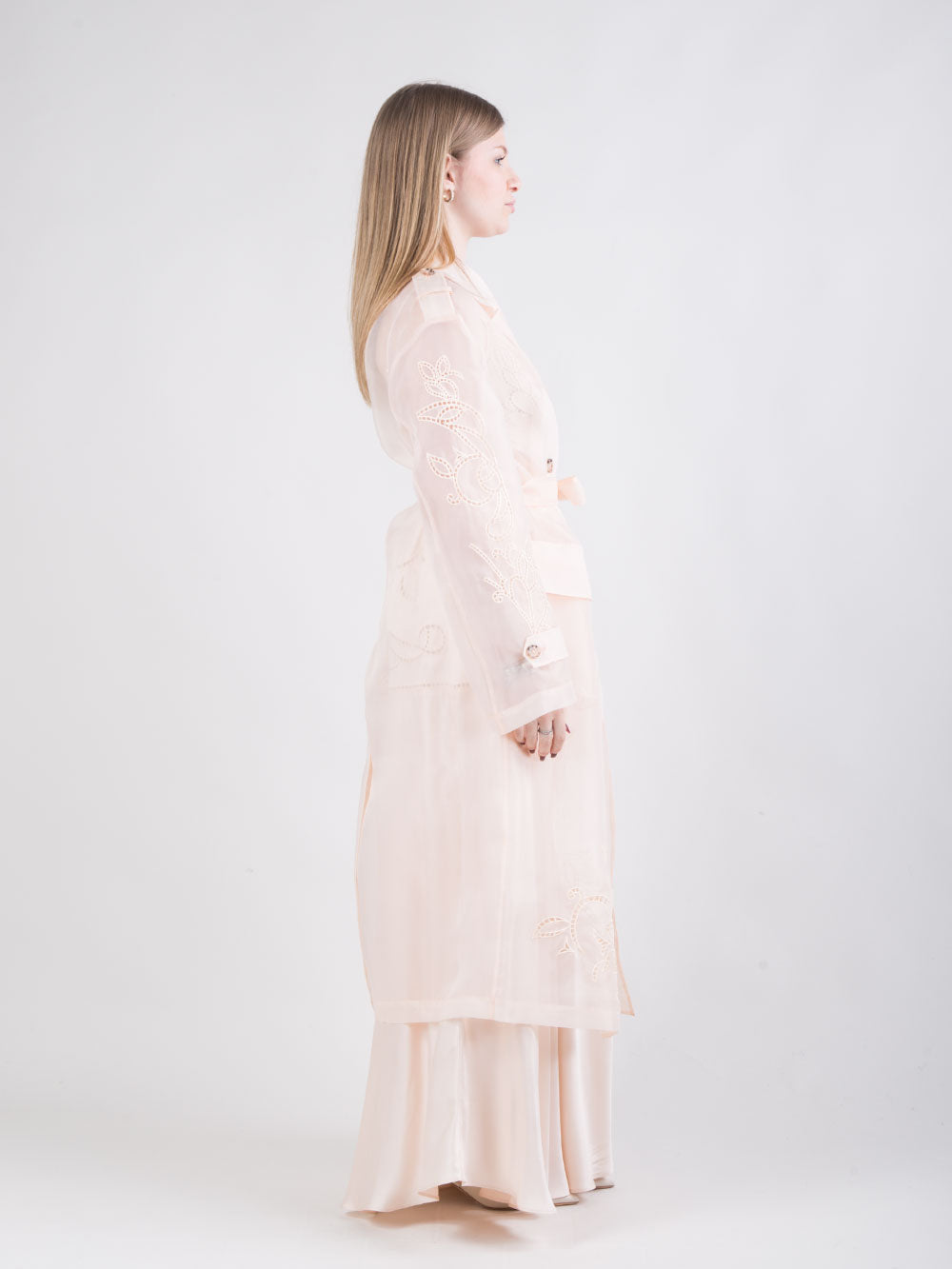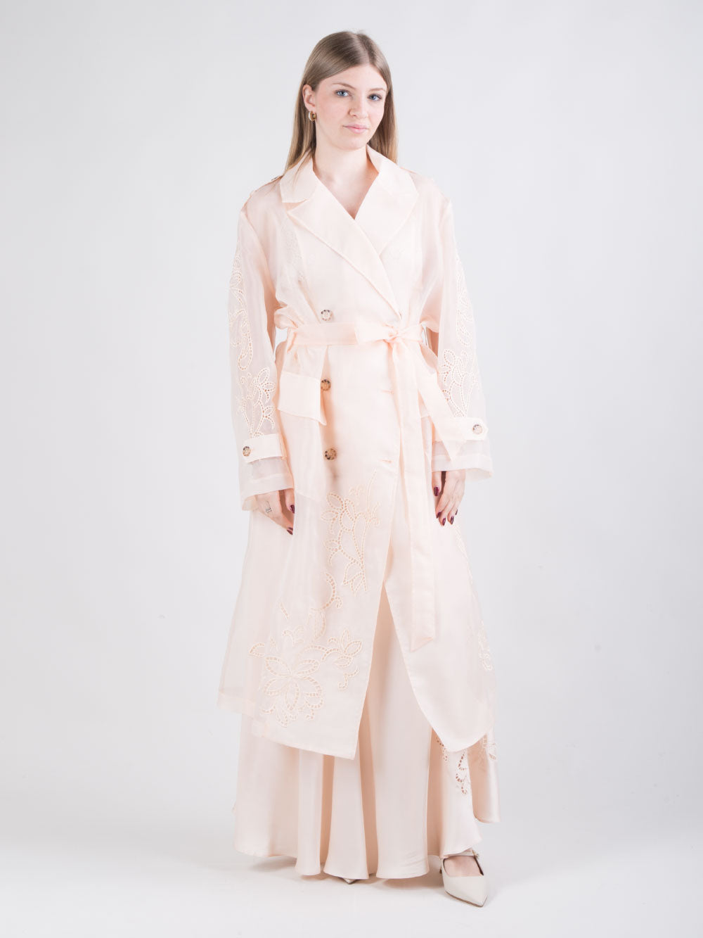 Trench lungo in organza ricamata