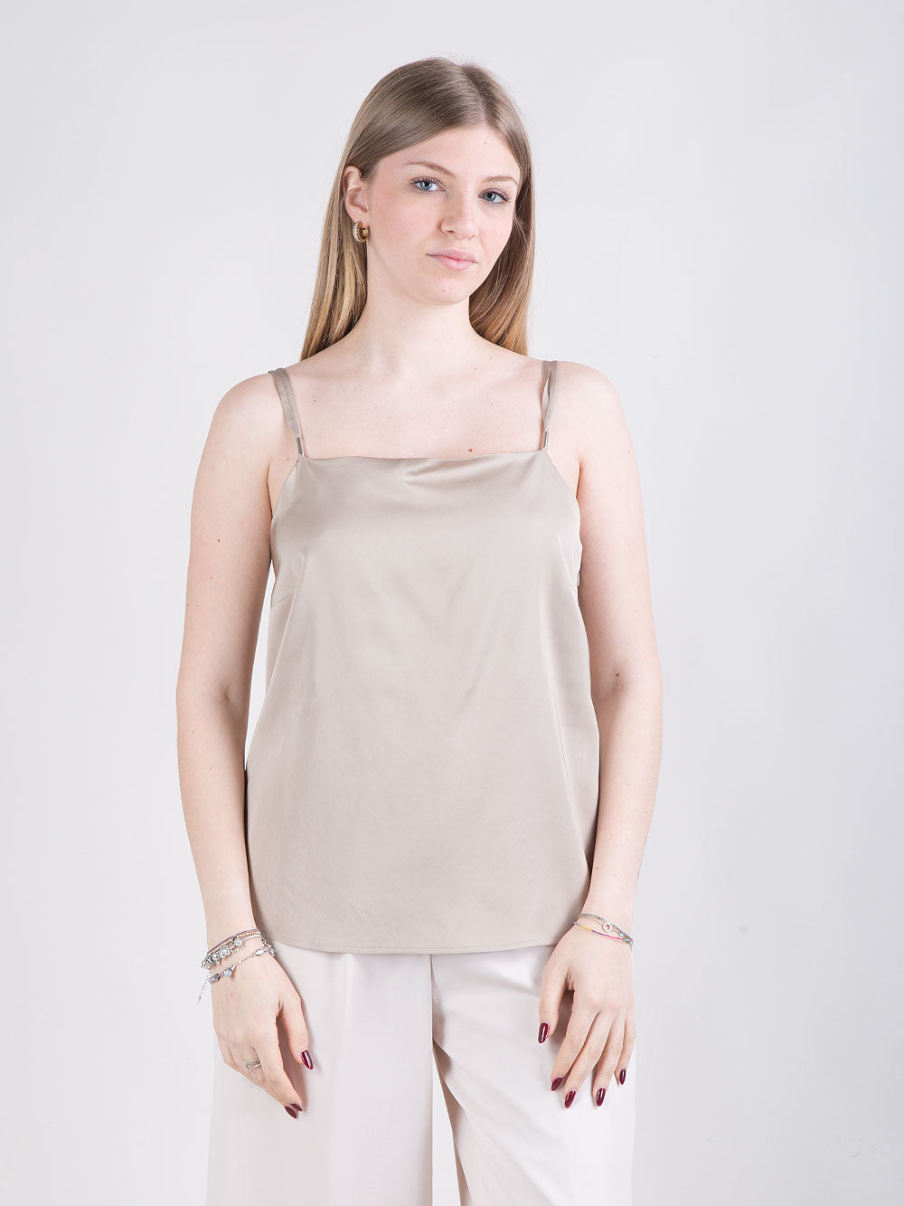 Top svasato con applicazioni in metallo
