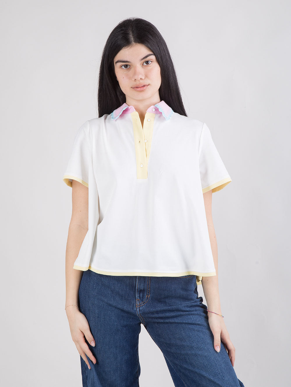 Polo bianca con colletto bicolore