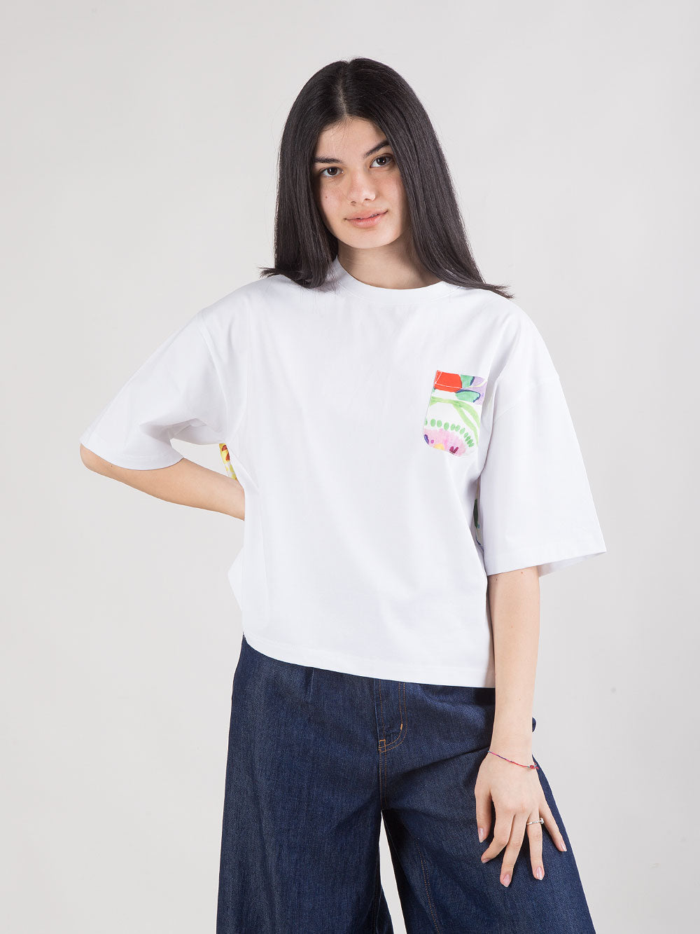 T-shirt bianca stampa floreale