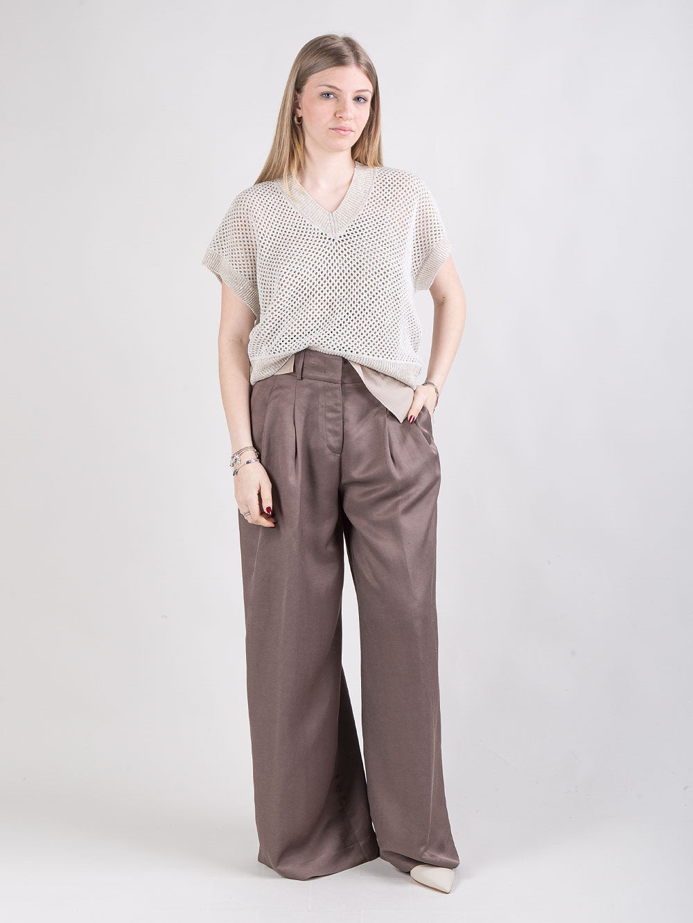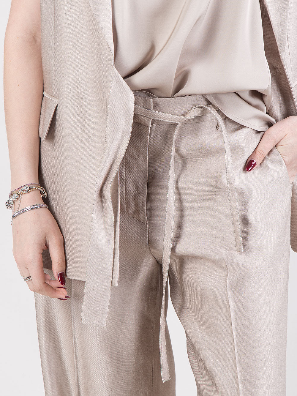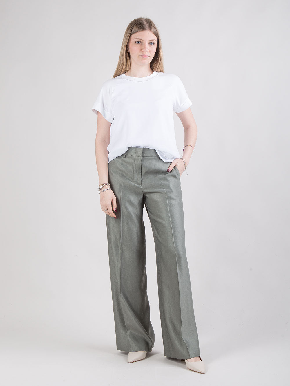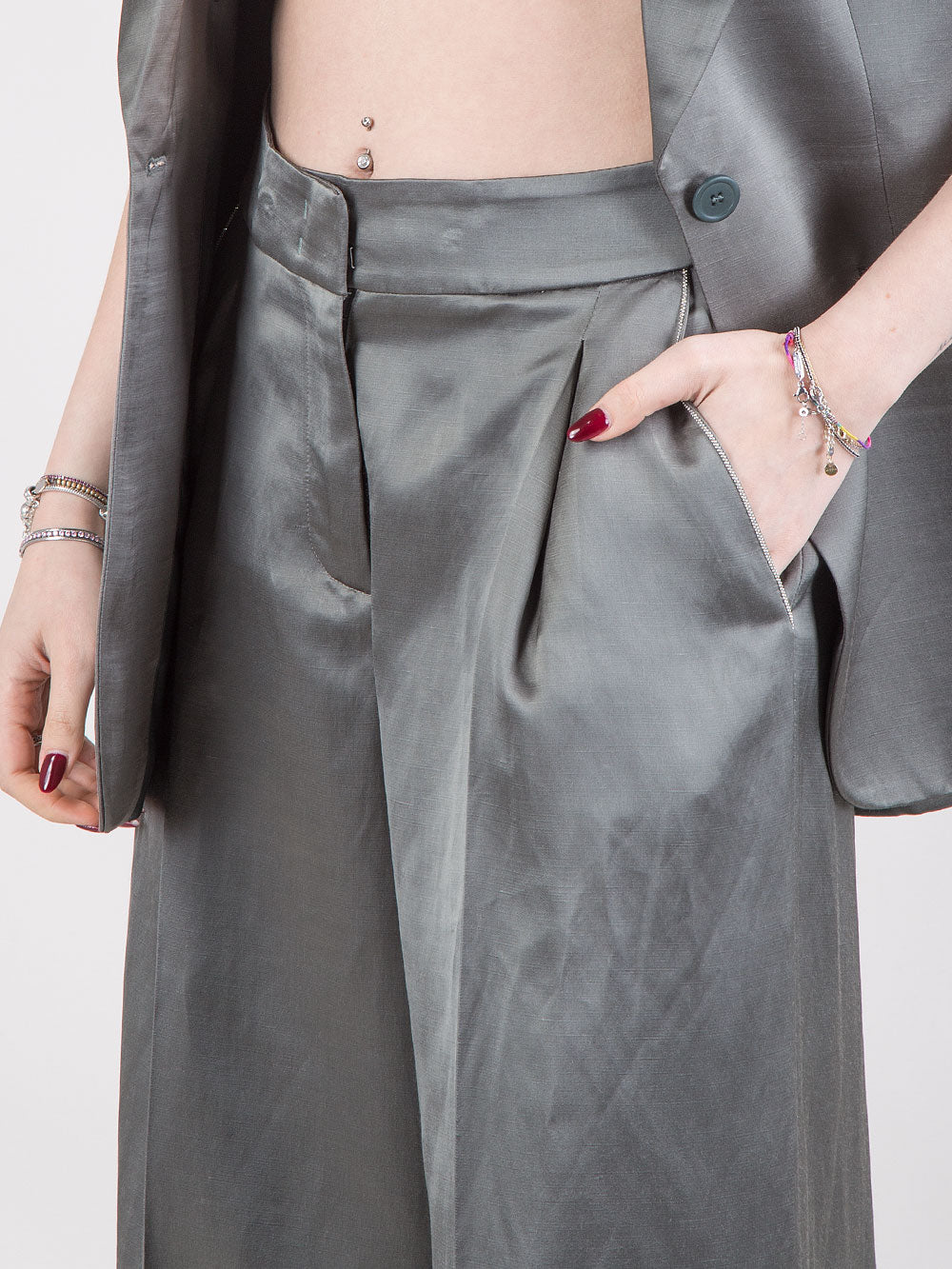 Pantalone palazzo con dettaglio punto luce