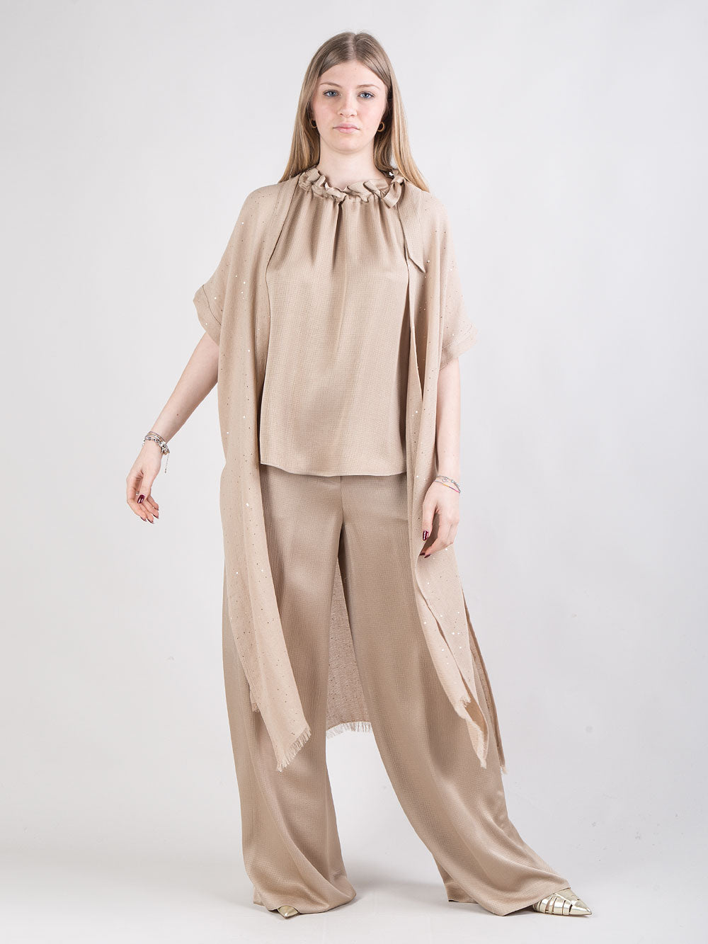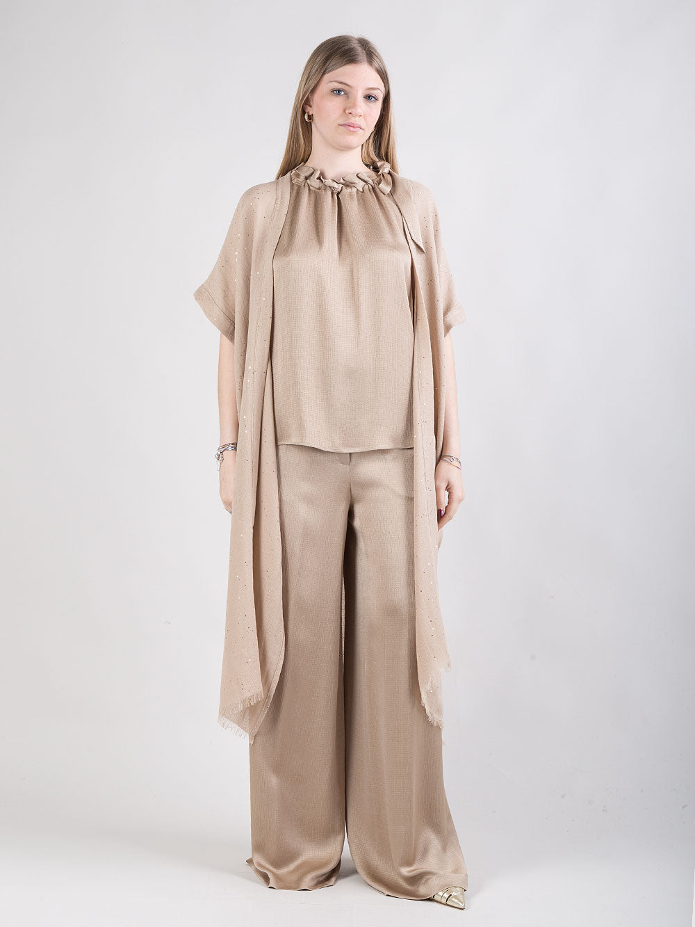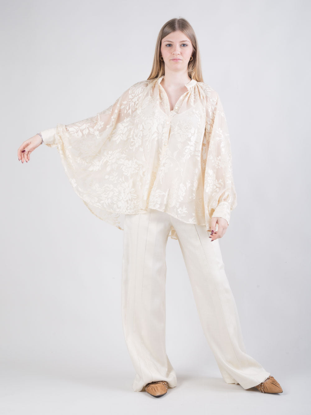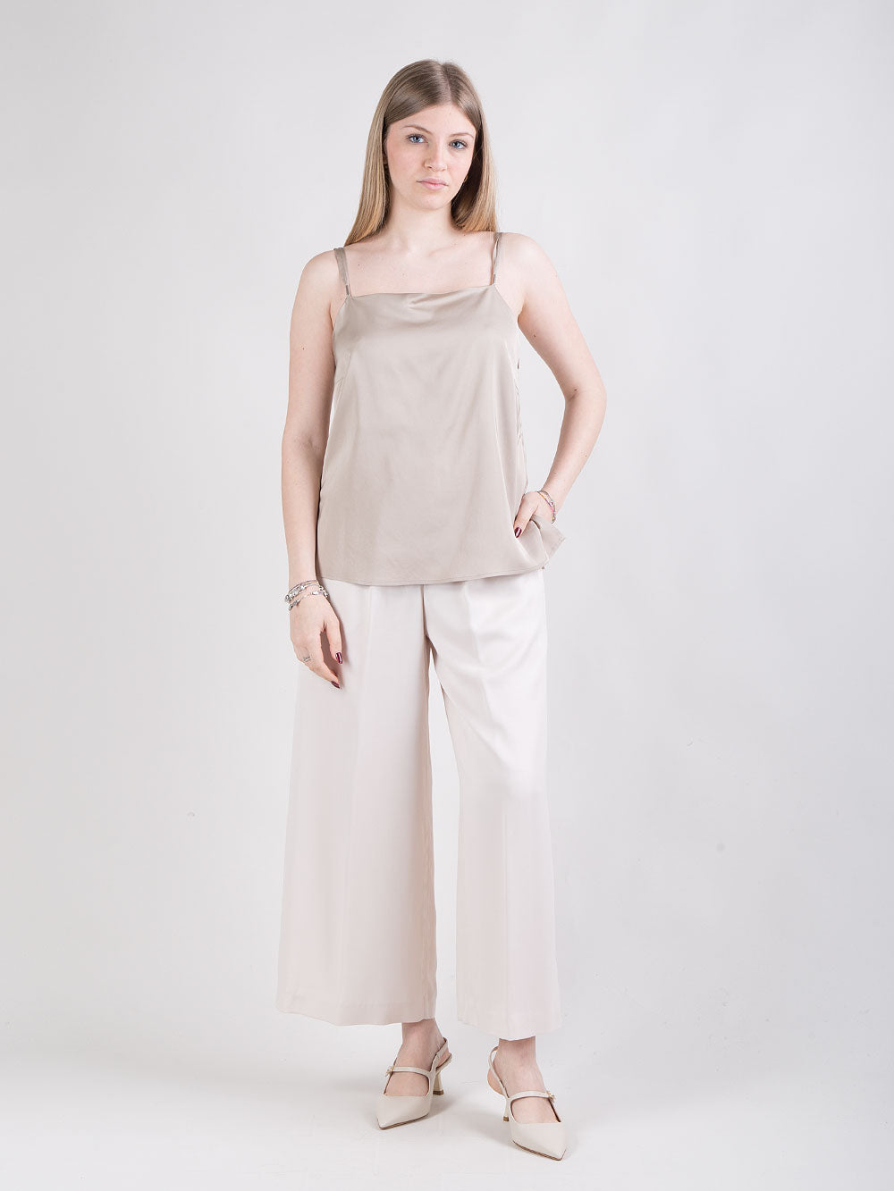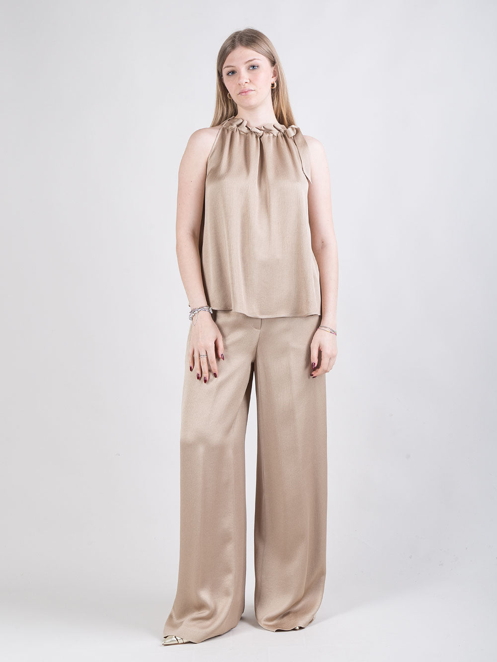 Pantalone palazzo con dettaglio punto luce