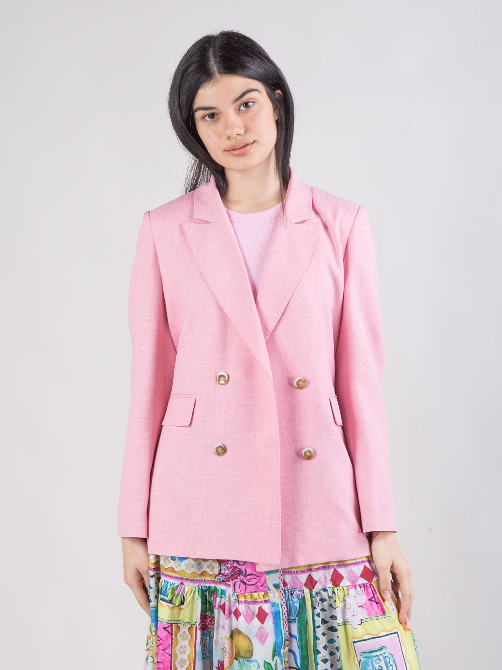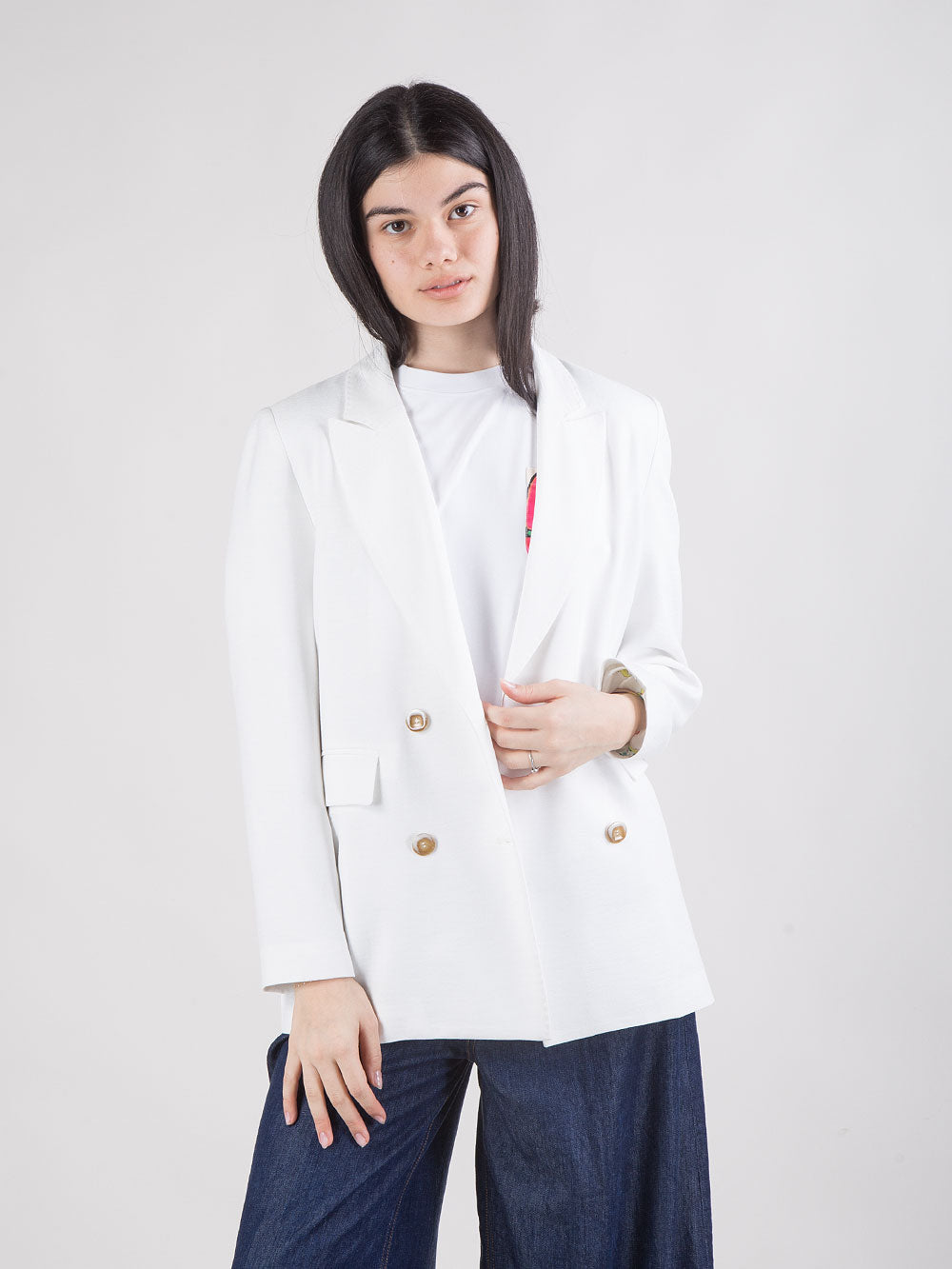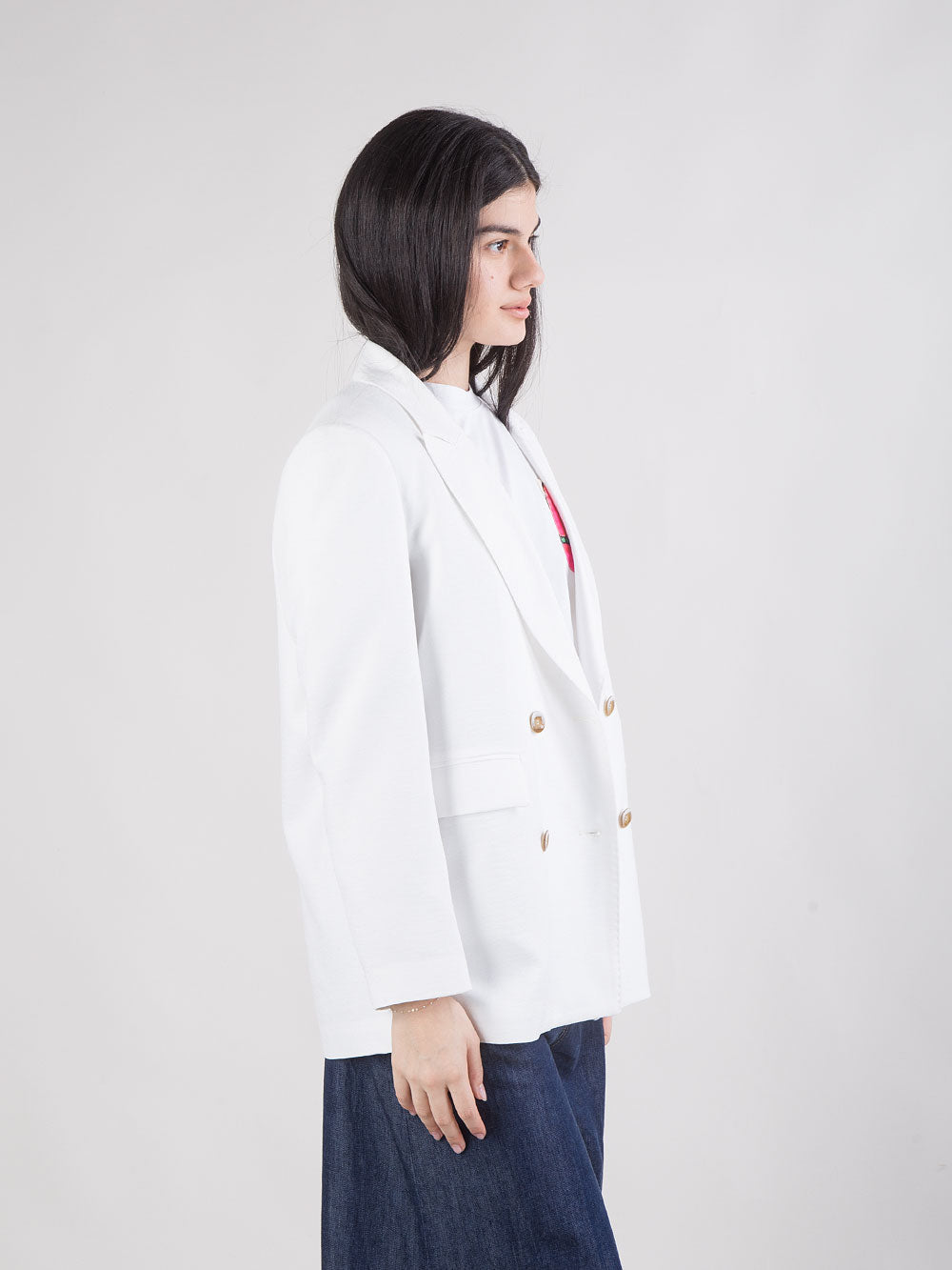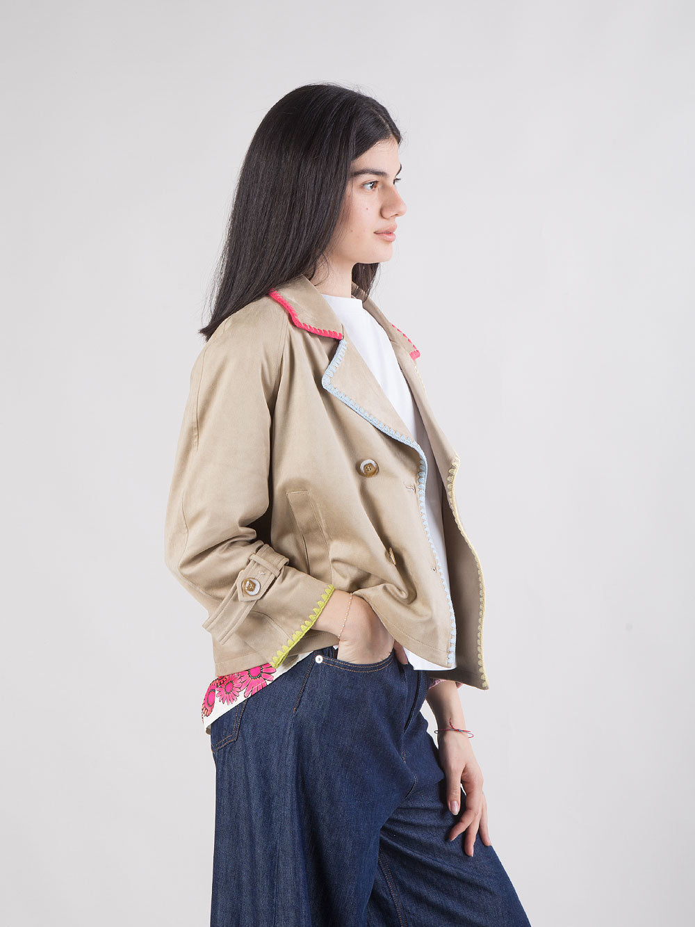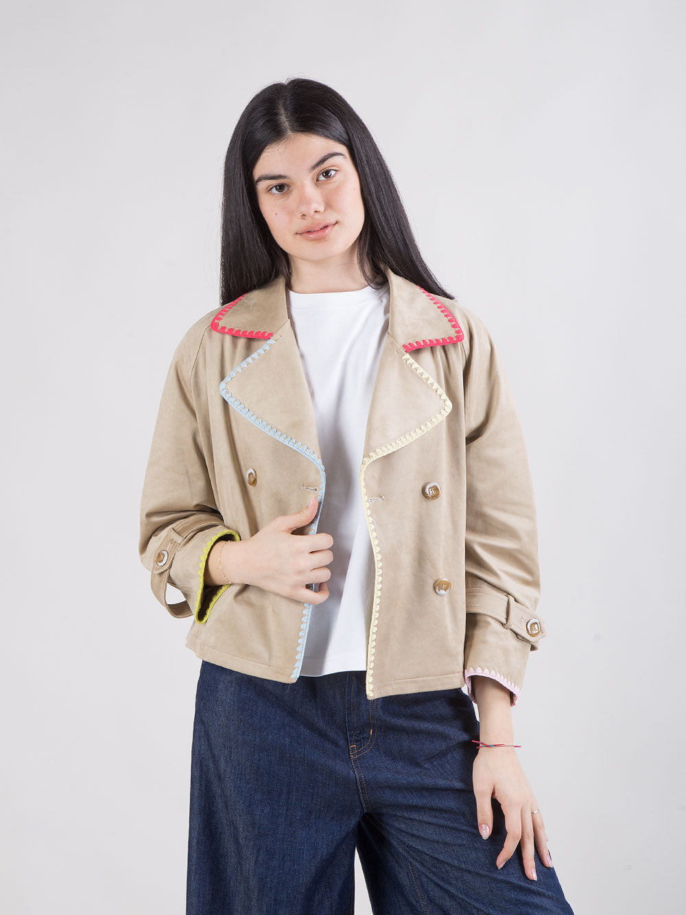 Giacca corta doppiopetto con profili colorati