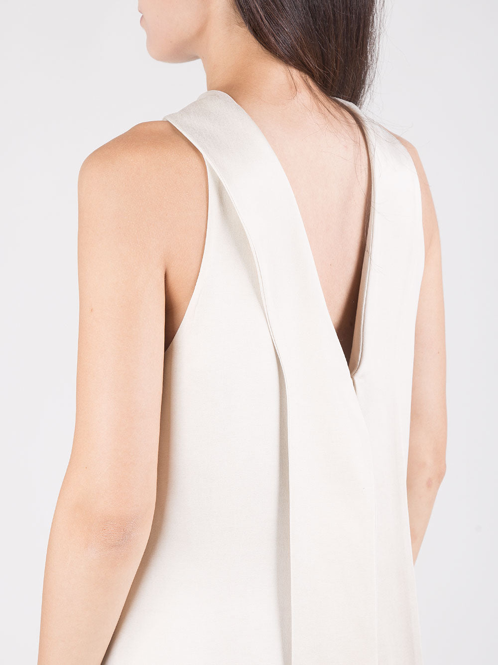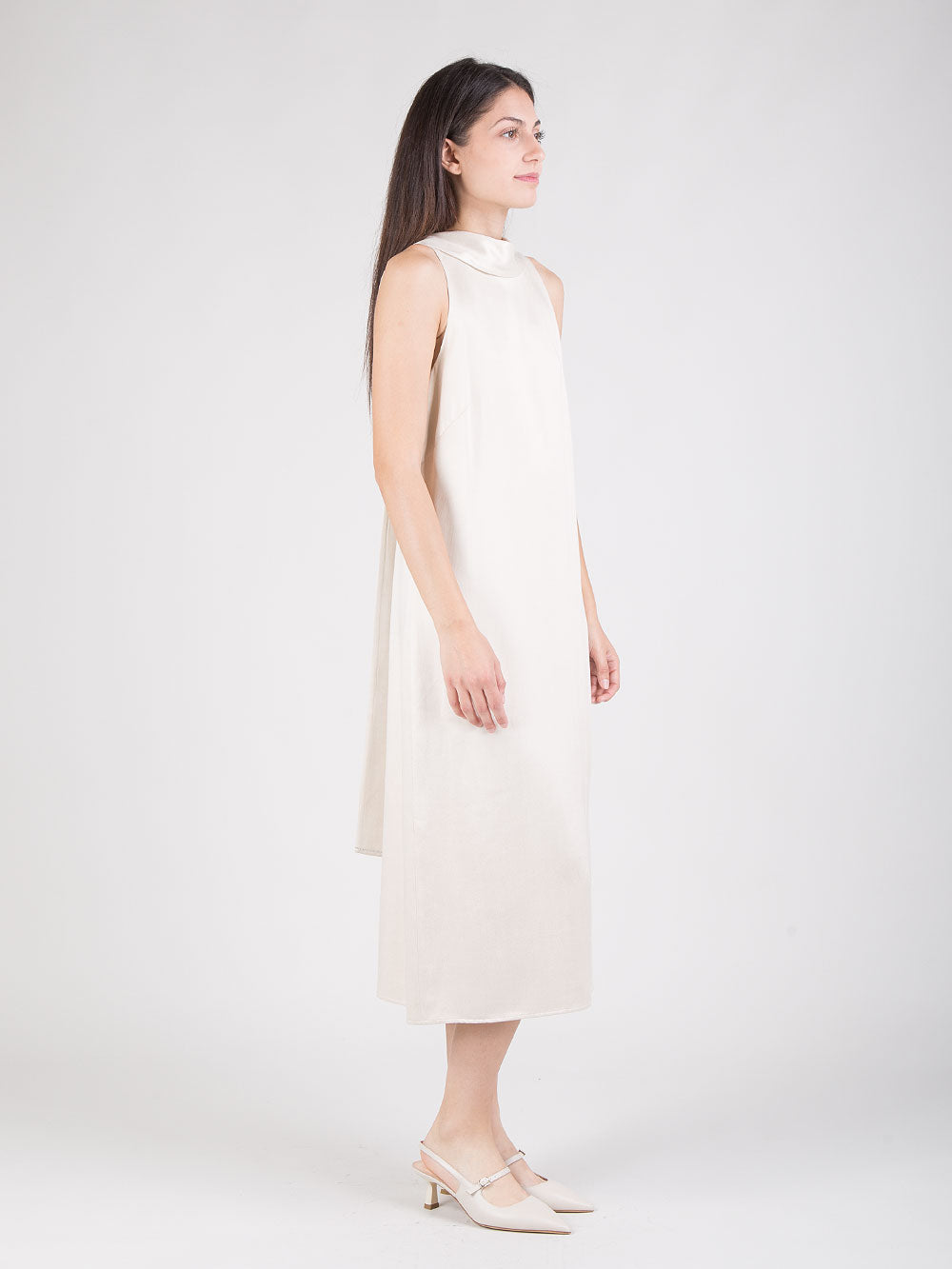 • Scollo all’americana con collo a sciarpa e fusciacche posteriori