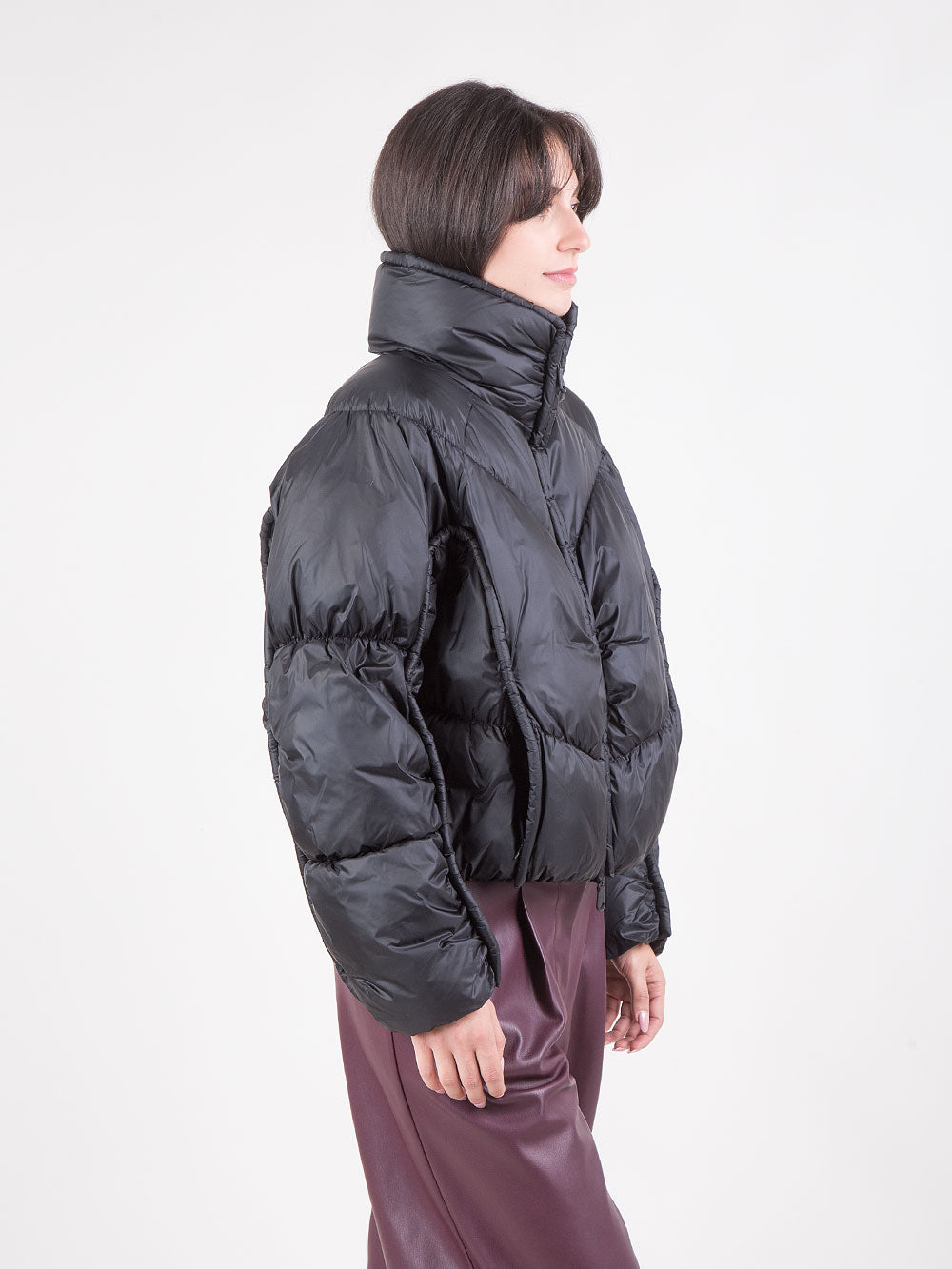 Piumino corto compatto e poliedrico, realizzato in nylon shiny dal finish luminoso e moderno. La linea essenziale viene valorizzata dalla brillantezza del tessuto, mentre l’imbottitura 3D offre struttura, morbidezza e una sensazione avvolgente. Un modello perfetto per completare look invernali eleganti ma dal tocco dinamico.