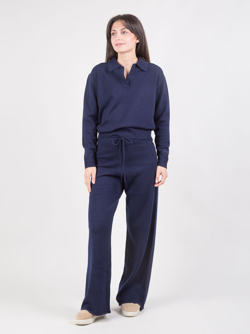 I pantaloni palazzo MC2 Saint Barth Cambon incarnano un’eleganza rilassata e sofisticata, perfetta per la stagione invernale. Realizzati in pura lana blu notte, offrono calore naturale, comfort e una caduta fluida che valorizza la silhouette femminile.