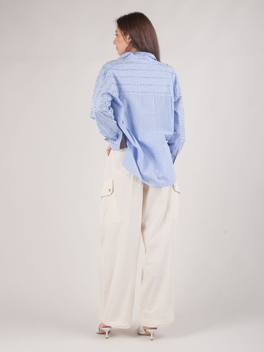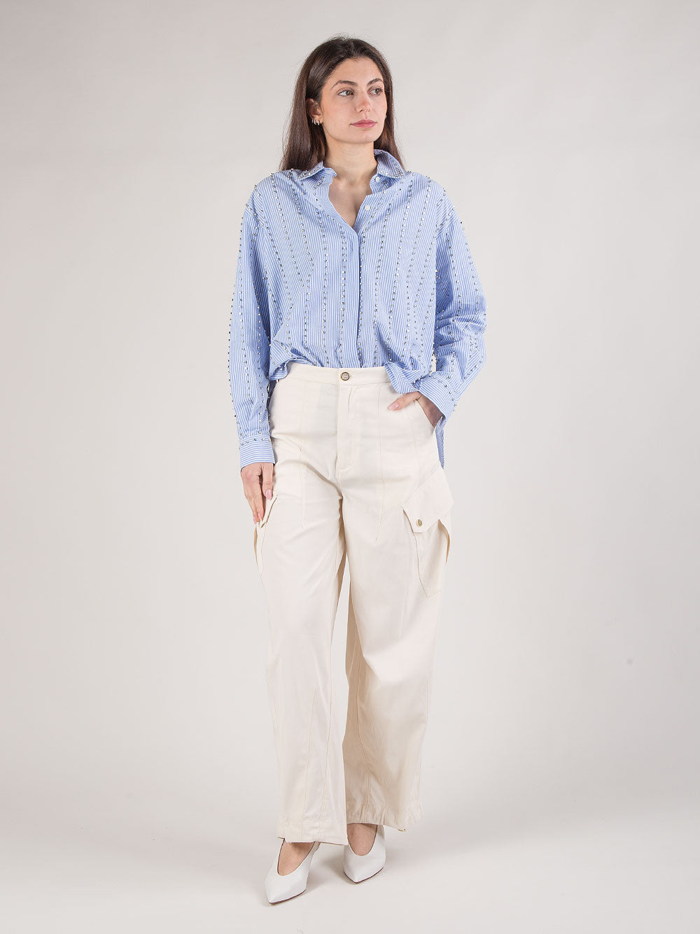 Il modello presenta due tasche laterali, due tasche posteriori applicate e due tasche con patta e bottoni lungo la gamba, per un design funzionale e contemporaneo. La coulisse regolabile al fondo consente di personalizzare lo styling, mentre la fodera interna garantisce maggiore comfort durante l’indosso. Perfetti per completare outfit quotidiani chic e leggeri, questi pantaloni sono un autentico passe-partout del guardaroba femminile. Rosalin pantalone.