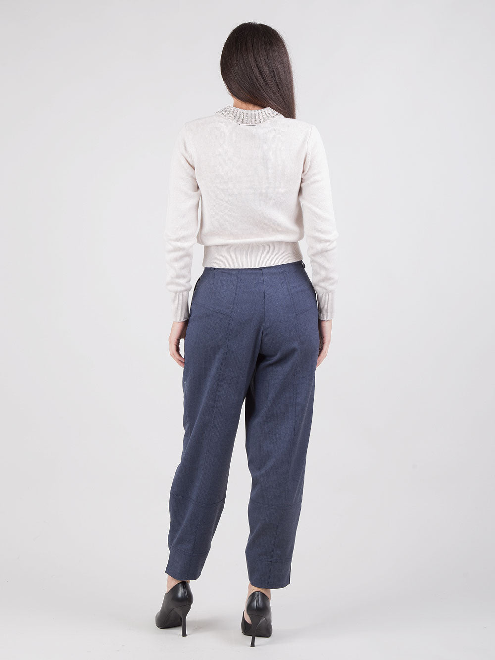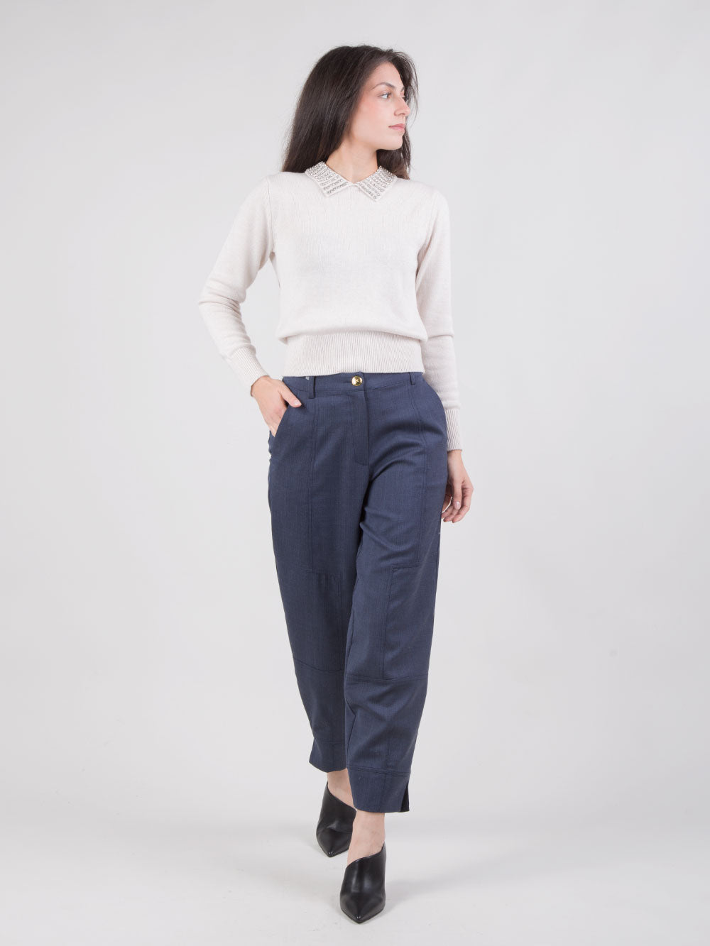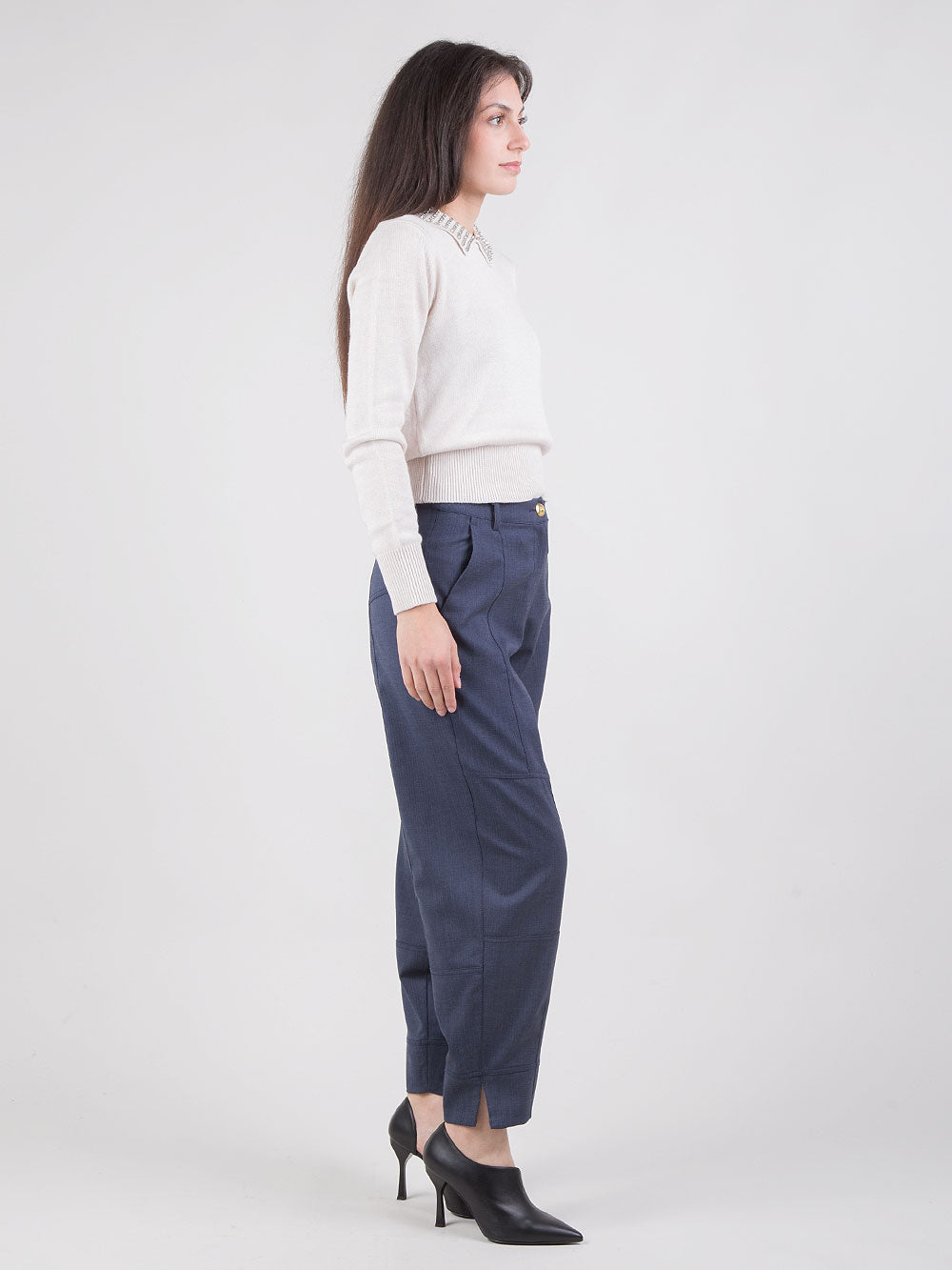 I Pecorino Pantalone PINKO in lana armaturata blue denim reinterpretano il classico modello balloon-fit con un tocco sofisticato e contemporaneo.