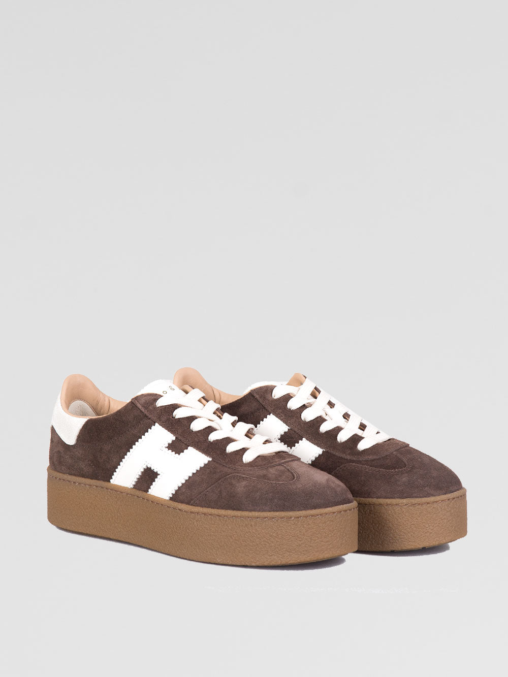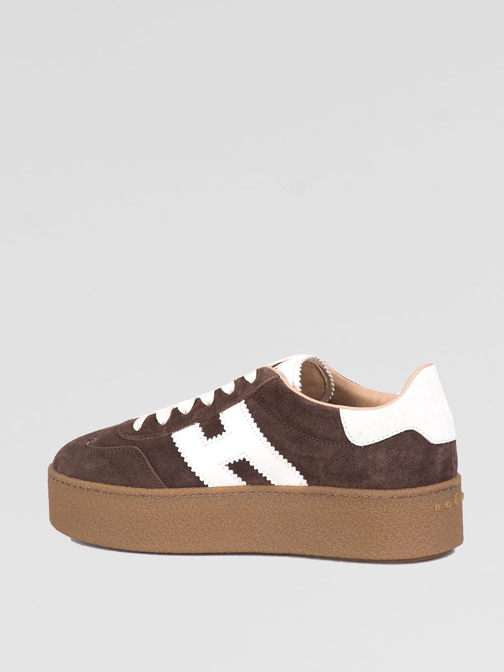 La sneaker Hogan Cool è l’equilibrio perfetto tra design contemporaneo e artigianalità italiana. Caratterizzata da una tomaia in pelle scamosciata con dettagli in nappa e l’iconica “H” laterale in pelle liscia, si distingue per lo stile sofisticato e versatile. La nuova maxi suola platform in gomma, leggera e moderna, assicura comfort e stabilità, mentre la soletta in memory foam da 8 mm offre un’ammortizzazione superiore. Con un’altezza totale di 5,6 cm, questo modello abbina femminilità e praticità, rendendosi ideale per i look casual chic di tutti i giorni.