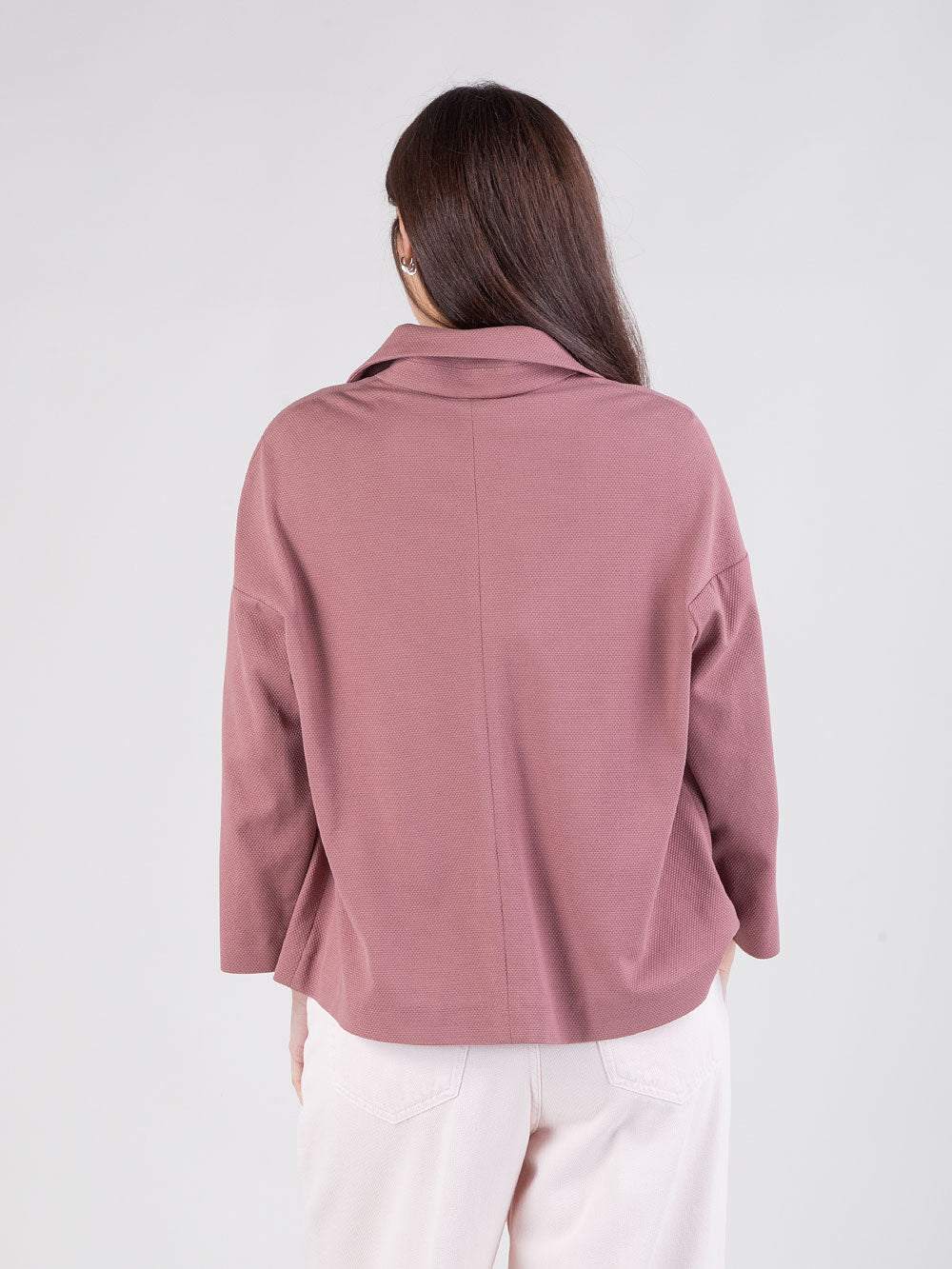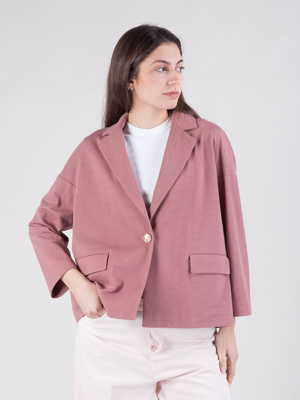 Il modello presenta chiusura con un unico bottone e tasca con patta, per un dettaglio discreto ma raffinato. Il colore praline aggiunge calore e versatilità, rendendo la giacca facile da abbinare a pantaloni, gonne o jeans, adattandosi perfettamente a molteplici occasioni.