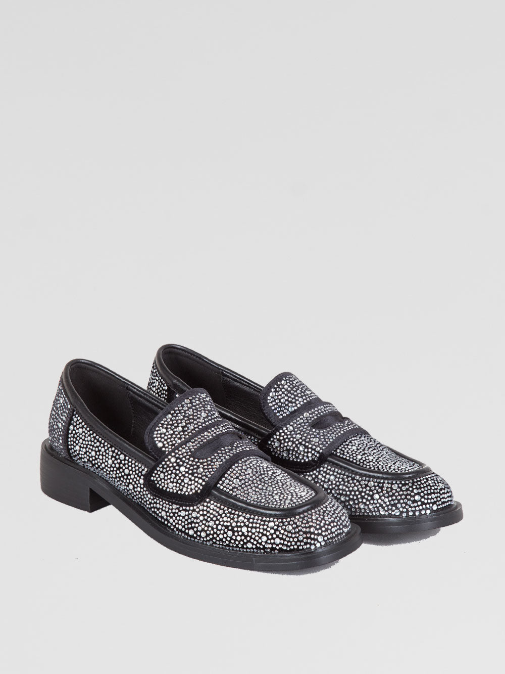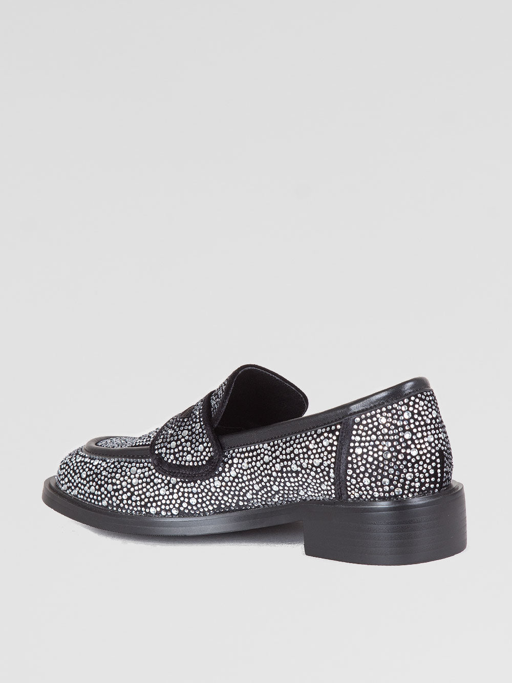 Il mocassino Jewel di TwentyFourHaitch reinterpreta un grande classico dello stile femminile con un’allure luminosa e contemporanea. Realizzato in pelle nera interamente ricoperta da strass, è un modello raffinato che aggiunge un tocco brillante a ogni look. La mostrina frontale classica esalta la silhouette essenziale, mentre il tacco basso di 1 cm garantisce praticità e comfort durante la giornata.